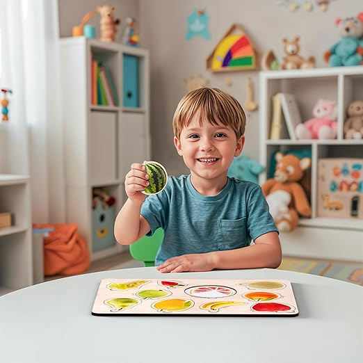 SPARTAN KIDS Wooden Fruit & Vegetable Puzzle (Set of 2) Educational Montessori 3D Puzzle for Kids Ages 3+, Colorful Early Learning Toy for Toddlers, Boys & Girls